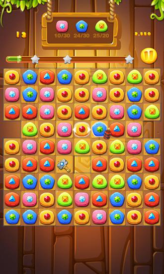 Match colorful gems by swapping them. Create rows of 3 and more colorful gems to explore them. Try to find ancient treasure in the ruins of an abandoned temple in this game for Android. Each new level gives you the opportunity to test yourself on the play field with a unique shape. Try to match rows of 3 and more gems. This will allow you to get useful bonuses that will help you complete levels quickly. Set records to impress your friends.