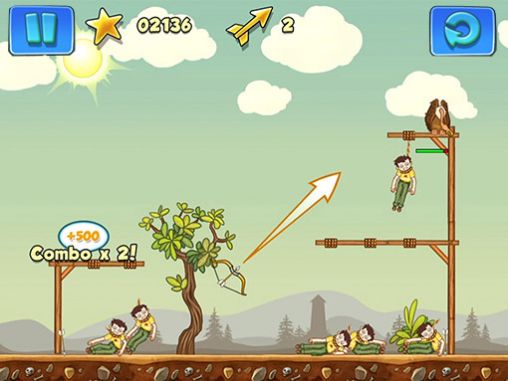 Npleasant to appear in wild solitudes, under the scorching sun, without food and water... on a tree … in a loop. What rescue is it possible to speak about when already there are no forces to wave away from Egyptian vultures with a naked heel? The matter of life and death is solved in one shot! Your task - to manage to get an arrow to a rope before the innocently hung up won’t expire.