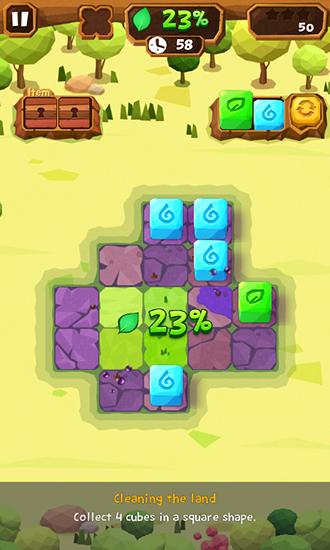 Make squares out of 4 cubes of the same color. They'll disappear and the tile below them will clear and become green. Save the planet from pollution and trash in this Android game. Travel the contaminated land and clean it, returning greens into the world. Place same cubes in a 2x2 squares to clear the whole grid in the end. Free blocked tiles, get rid of acid slime puddles and various monsters. Get different bonuses and power-ups that will help you clear the world more quickly.