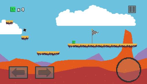 Guide the funny hero that looks like a green square through many locations full of obstacles. Guide the green hero forward through forests, mountains, cities, and other unusual levels of this Android game. Jump over deep pits and overcome various obstacles. Jump higher and higher climbing up the platforms. Avoid traps, monsters, and other dangers. Dodge shurikens and other sharp objects flying through the air.