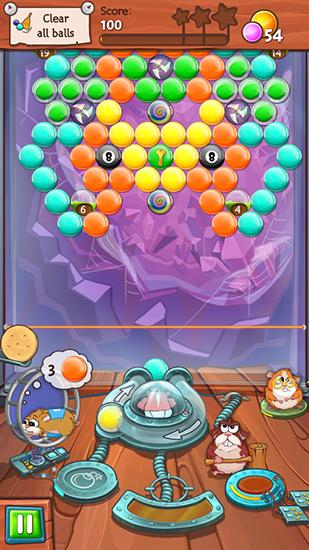 Help a team of funny hamsters pop colorful balls. Shoot your cannon and match 3 or more same balls. The heroes of this game for Android, 4 hamster, need to do all possible to escape the laboratory. Each of them has unique abilities, which they use to pop colorful bubbles. One hamster runs and creates bombs, other can control balls with the power of his mind, and so on. Destroy large groups of balls, complete tasks, earn points, and improve abilities of your hamsters.