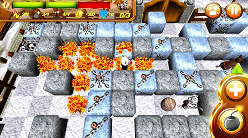 Help cute panda bear free all baby pandas held in cages by evil monsters. Blow up all your enemies with bombs. In this Android game you control a heroic panda bear who must complete complex missions. To complete a level, you need to release all the pandas or blow up all the enemies. Place bombs on the way of your enemies. Don't forget to hide behind indestructible objects, because the hero himself could be blown up by his own bomb. Improve hero skills and pick up various bonuses and power-ups.