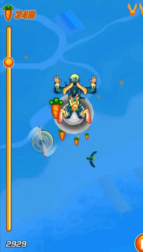 Help a brave bunny who's jumping off the plane and collecting all the carrots flying through the air. Avoid the obstacles. Insidious beavers from this Android game stole carrots from the bunny and loaded it on a plane. Our hero sped after them and managed to shoot down the plane of the villains, but all the carrot fell out of the plane and is now falling down. Bunny puts on a parachute and rushes to save his treasure. Control his jump, collect all the carrots, dodge dangers and open the parachute at the right moment. Buy new equipment for the bunny.