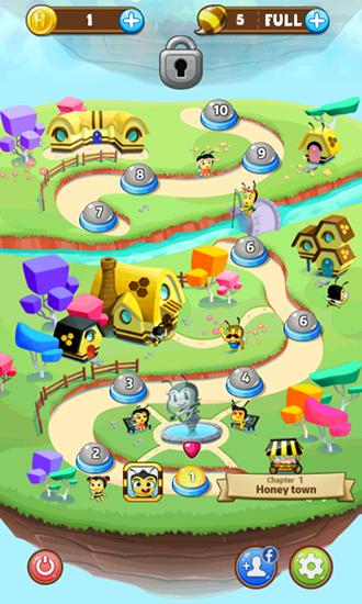 With a funny be travel the magical land. Match 3 and more same flowers to make them disappear and get points. Help the bee to collect honey and release friends who got into trouble in this game for Android. Swap colorful flowers and form rows of the same color. They can be horizontal, vertical, and diagonal, because the tiles are in the form of honeycombs. If you match more than 3 flowers you'll get a magical bonus that will help you in a difficult situation.