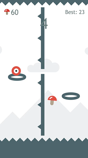 Control a funny round hero. Tap the screen to make the hero jump. Jump through hoops on the way. The goal of this fascinating game for Android is to guide the hero as far as possible. Tap the screen in time so that the hero jumps over obstacles. Avoid spikes and other dangers. Jump into hoops like a basketball ball. Each time you go through it you get extra points. Don't forget to collect mushrooms hanging in the air. Unlock new heroes.
