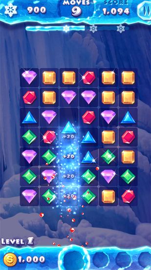 Move and swap different ice crystals. Match 3 or more same crystals. They will blow up and you'll get points. Help funny snowman deal with tricks of a mischievous elf in this Android game. Beat the levels, get points, and make your snowman bigger. Don't let the elf freeze all the magical world. Try to beat the levels with as little moves as possible to get 3 stars. Use different bonuses and boosts to do that. Post your records and amaze your friends.