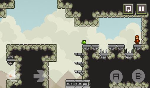 Control a green alien creature that needs to escape human colony. Control humans and move towards the exit. The protagonist of this game for Android can jump onto humans and control their bodies. Each settler has unique abilities and equipment that can help the hero. Your task is to guide the hero to the exit of each level, avoiding the numerous pits along the way. Jump over gaps, avoid cannon fire, move boxes, etc. Control various colonists.