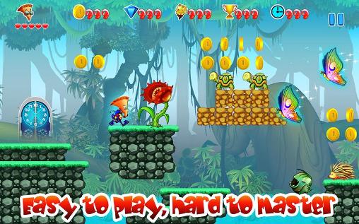 Guide the boy called Jake through many adventures in different worlds. He needs to find and save his mother and younger sister. Interfere in cunning plans of the evil witch in this Android game. Guide Jake through amazing island floating in the sky. Walk through deserts, jungles, icy plains, deep caves, etc. Collect gold coins and different bonuses on the way. Jump on platforms, over obstacles, swim across water obstacles. Defeat enemies by shooting them with ice cream or jumping on them.