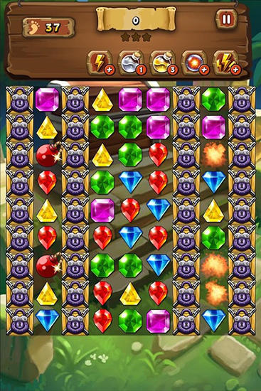 Move colorful jewels on the screen, swap them and match 3 or more same jewels. Go on a treasure hunt with a crew of cheerful pirates. In this Android game you'll go to tropical islands, where pirate treasures are hidden. Match rows of jewels to blow them up, complete levels, and get treasures. Open the locked tiles and do other tasks. Match long rows and get rewarded with a variety of bonuses. Set records.