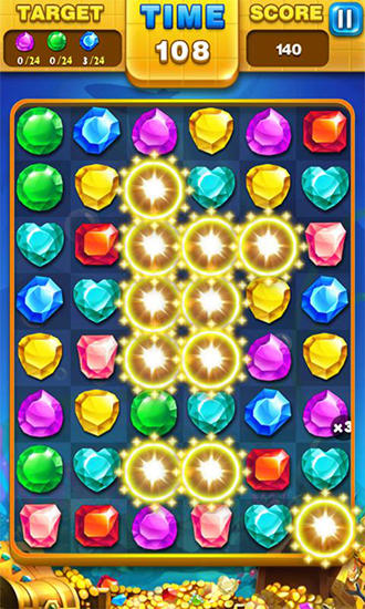 Move rows of jewels up or down. Drag the columns right and left. Form rows of 3 and more same jewels. Blow up rows of same jewels in this Android game. The more jewels you match, the more points you'll get when they blow up. To beat the level you need get to the goal in a limited number of moves. Use various bonuses, earn extra points and beat levels faster setting new records.