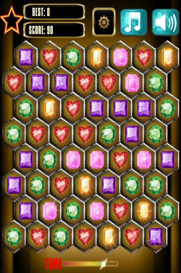 Destroy the jewels in the hexagons on the screen. Tap 3 or more jewels to make them disappear. Destroy hundreds of colorful jewels in this Android game. The more jewels you destroy at the same time, the more points you get. Use a variety of bonuses and power-ups to destroy all the jewels quickly and go to the next level. The game has different modes, for example time limit and endless mode.
