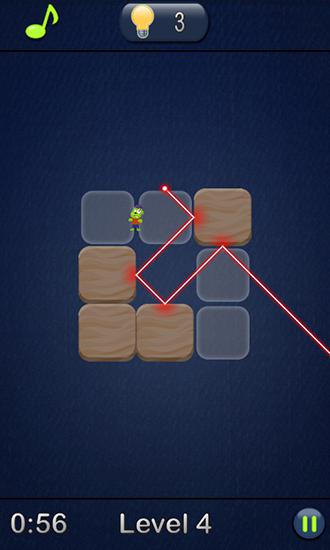 Kill stupid zombies using a powerful laser. Move squares that can reflect the laser beam. Use your wit and logic to prevent the zombie apocalypse. Small zombies lurk among the blocks of the screen. There's a laser directed onto the screen. Place blocks on laser's way. When the beam hits the block laser changes direction. Use this feature direct the laser beam into the zombies. Try to do the task in minimum amount of movement.