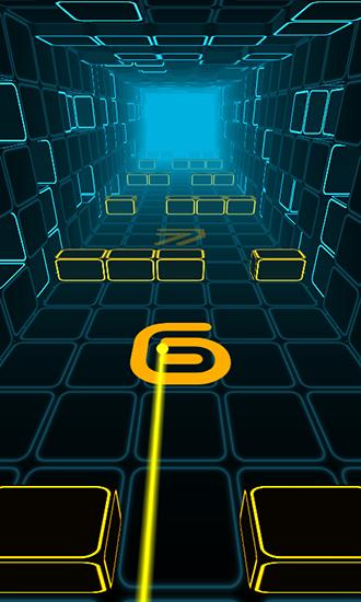 Control a glowing ball racing along the track in virtual space full of different obstacles. Train your reflexes in this dynamic game for Android. Control the movement of the ball, move it from side to side to avoid collision with rectangular blocks and other obstacles that appear in your way. Try to guide the glowing ball as far as possible along the track and set a new record. Use teleporters and other bonuses that will help you complete tasks.