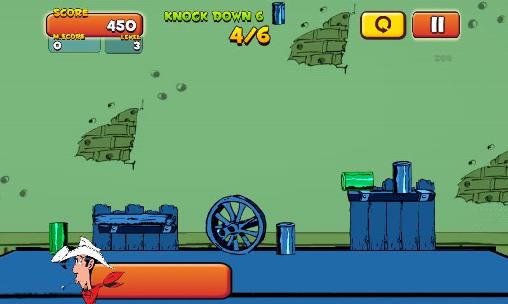 Help brave cowboy Lucky Luke in his adventures in Wild West. Shoot different targets from your revolver. The hero of this Android game needs to travel far across the plains of the Wild West. At each stop he has another accuracy and logic test. Shoot targets made up of different items, from cans to bombs. The target are affected by gravity. Shoot the right places of targets to start destructive chain reactions. Help Luke become the best shot of the West.