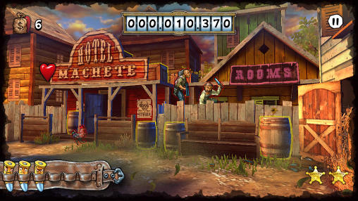 Pull out your revolver from the holster and shoot bandits, robbers, and other enemies in Wild West towns. Put things right in the Wild West in this Android game. You'll need to complete various tasks of eliminating evildoers. Stroll through the streets of the town and shoot bandits who're suddenly popping up from behind various covers. Shoot fast and don't let the criminals beat you. Be careful and don't shot civilians. Fight treacherous bandits, robotic cowboys, and other enemies.