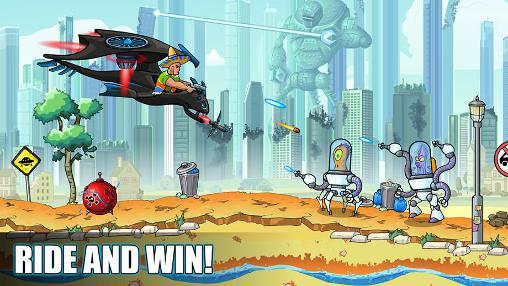 Drive a car or other vehicle. Speed through levels defeating evil space aliens on the way. Angry aliens attacked the Earth in this game for Android. Help the fearless hero protect the planet and save funny octopus. Hero runs an unusual machine. Guide the hero through the levels, jump over obstacles, ram enemies. Shoot aliens from different weapons placed on the car. Do interesting missions and get rewards. Buy costumes and weapons for your character.