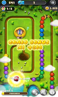 A colorful arcade in Zuma style. Shoot color balls to destroy groups of one color and don’t let the chain reach a cave.