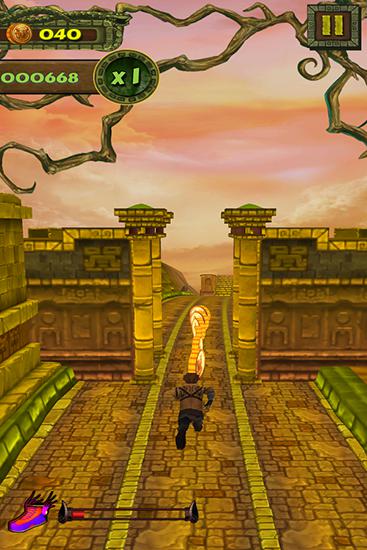 Help the fearless Maya Indian escape from the evil pursuers. Guide the hero through a huge ancient temple. Collect gold coins on the way. Guide the hero of this game for Android along the road full of dangers. Run forward at an incredible speed. With one flick of a finger make the hero do dizzying stunts and amazing jumps. Try not to miss a single coin on the way. You need gold to unlock new characters as well as to improve them. Use boosts and other bonuses to complete the course.