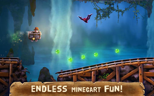 Help the brave adventurer who's speeding on his minecart along narrow rails through jungle, caves, and other locations. Go looking for treasure with the main hero of this game for Android and his faithful companion raccoon. You'll need to go through dangerous jungle, intricate caves, and rivers of molten lava. Collect sparkling gems and find rare artifacts along the way. Keep an eye on the track and change the path of the minecart to go past traps, escape from giant spiders and other monsters.