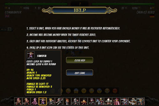 Command your own army on the battlefield. Create it using different combat units with unique abilities. Show your strategic talent in this Android game. You have a wide selection of various warriors who you can hire if you have enough gold. Each type of soldiers has its strengths and weaknesses. They have different effectiveness in battles with different types of enemies. So you need to adjust your army depending on enemy army.