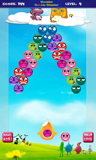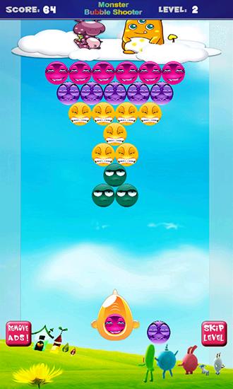 Shoot colorful bubbles form your cannon. Try to match groups of 3 and more same bubbles to explode them. Travel the country of funny monsters in this Android game. Fire funny monsters from the cannon and make them join other monsters enclosed in bubbles. Try to shoot to match groups of as many same bubbles as possible. This will allow you to quickly clear the screen, earn more points, and get useful bonuses and boosts.