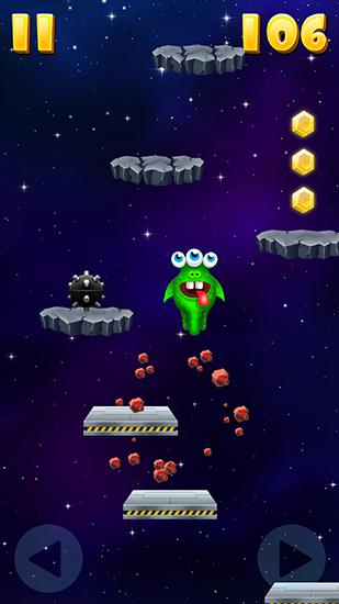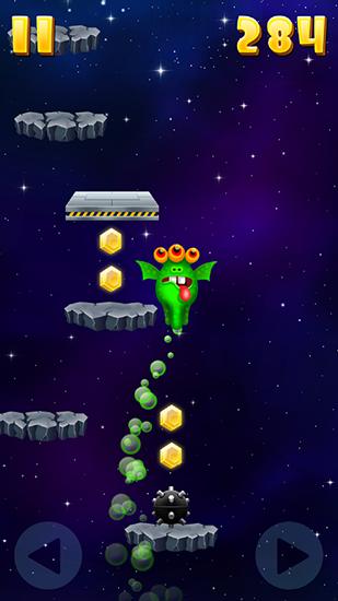Help the funny space monster climb as high as possible jumping from platform to platform. Don't forget to collect coins and bonuses. Help the hero of this game for Android in his space adventure. Be careful, there are many angers on monster's way. Some platforms that you have to jump along can move. Dangerous asteroids are flying through space. Treacherous monster robots are ready to fry up the monster with their electric discharges. Avoid those dangers, collect useful bonuses like UFOs.