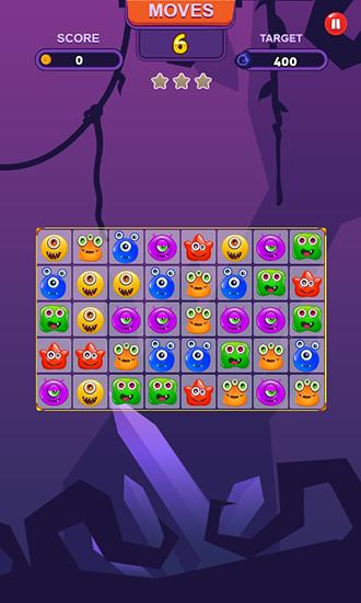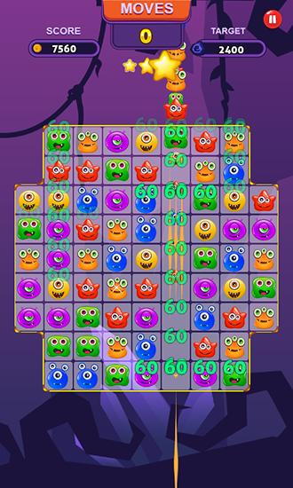 Move the funny monsters by swapping them. Match 3 and more same monsters to make them disappear. Explode hundreds of funny monsters in this Android game. Free the blocked tiles and do other tasks to complete the levels. Thy to match as many same monsters as possible. As you do that you'll get additional points and bonuses that will help you complete tough levels.