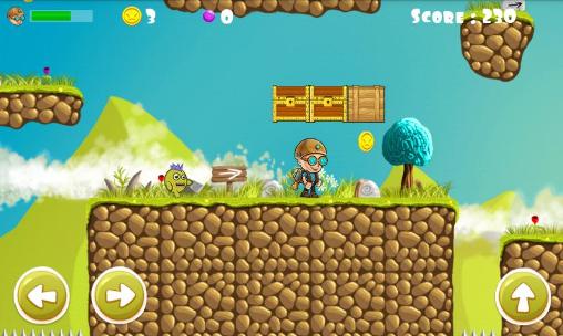 Guide the funny hero through colorful locations full of different monsters. Jump onto platforms, collect coins and various bonuses. Travel amazing worlds in this Android game. Jump to kick out the coins hidden in boxes and chests hanging in the air. Jump over bottomless pits. Avoid various traps. Jump from platform to platform and look for hidden treasures and bonuses. Run away from evil monsters or jump on top of them to destroy them. Strong helmet and jetpack will help the hero.