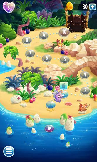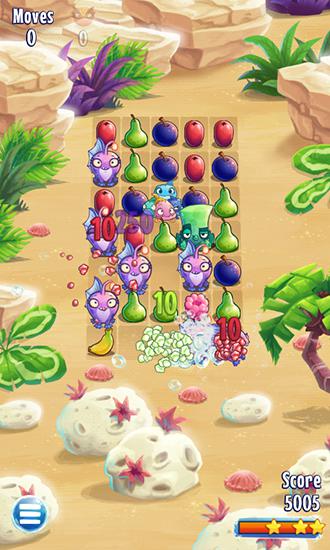 Help funny creatures get as many fruits as possible. Swap the fruits matching as many of them as possible. The heroes of this game for Android came ashore and are traveling the magical island in search of delicious fruit. Help them pick fruit. Try to match as many same fruits as possible to call for cute creatures with unique abilities who'll help you destroy fruits. Defeat sly lizards that want to prevent the heroes from succeeding. Set records and compete with friends.