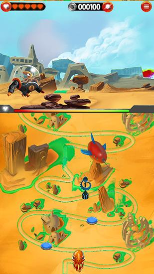 Help a space octopus dressed in a robotic space suit fight many alien enemies. Invasive aliens destroyed home planet of the octopus, the hero of this game for Android. He puts on his space suit and sets off to avenge his. On each level you'll have the next battle with the space monsters. You must explore the playing field at the bottom of the screen. It consists of 20 cells that may hide weapons, power-ups, and bonuses. Open the right tiles to improve the hero.