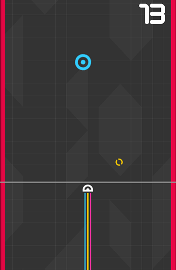 Control a spaceship speeding through the virtual space and leaving the trace of colorful lines. Train your reflexes in this Android game. Your ship is flying fast through the dark space. There's different colored circles on its way. Tap them to capture them. By clinging to them with rope, the ship will be able to swing around it changing its direction. Go as far as possible, flying from one circle to another, and try avoid crashing into side walls.