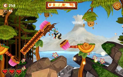 Launch funny characters from cannons to move them through colorful locations. Guide hero's flight from one cannon to the other. In this fun Android game you meet characters from a familiar cartoon. Travel the beautiful island inhabited by a variety of animals. Help the character get as far as possible on a track full of dangers and traps. Direct the hero to collect pearls and other bonuses on the way. Unlock new characters and new types of guns, each with its own characteristics.