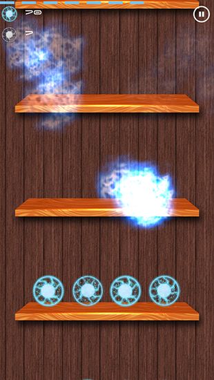Mysterious glowing orbs lay on shelves on an endless wall. Move down and blow them up by tapping them. You can only tap blue orbs. If you blow up red one or purple one you'll fail the level. Green orbs will help you, when they blow up they destroy blue orbs around them. The speed rises with each new level, so it'll be easier for you to miss. Train your attention and reaction with this absorbing Android game.