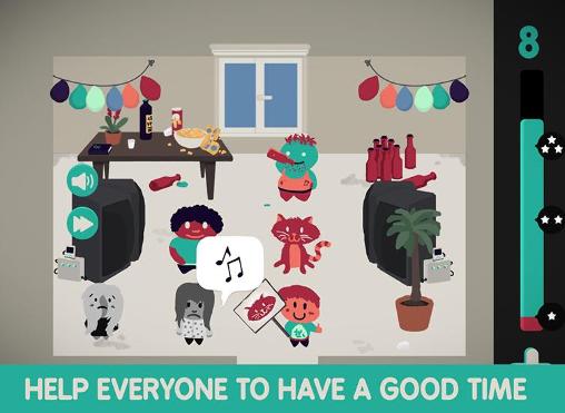 Help amusing characters throw fun parties where everyone can find something to do. Find out what each character wants. Have fun at parties of this Android game, which are held in a house, in the woods, and even in space. Your guests are common humans and unbelievable creatures like aliens, a variety of animals, robots, etc. Tap the character to know what they want. Move the characters on the screen to the area where they can find what they wanted.