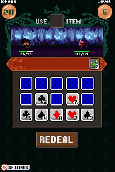 Guide the hero through many battles and fights with different monsters. Create combinations of playing cards to defeat enemies. In this Android game you can create a unique hero and go into a dangerous adventure through wild lands with a variety of monsters. Defeat the enemies you meet and unlock new weapons that will improve your hero. Each fight is a quick poker match. Use your logic and rely on your luck to get strong cart combinations and defeat your enemy.