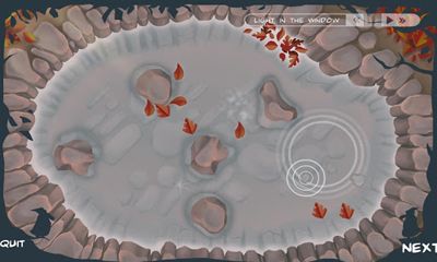 is a small pond with fallen autumn leaves on its surface, and you are to gather them...Very unusual and relaxing game; so if you have a desire to rest from shooters and racings, then “Pond†is just what you need! Despite the fact that the fallen leaves do not spoil the beauty of the pond, but, on the contrary, add a charm to it, your task is to put all the leaves together by throwing small stones close to every leaf to make a wave, which will put it in the right direction. The easiest way is to bring each single leaf to the place where there is already a small cluster of them…“Pond†really helps to relax and spend a nice time. And thanks to the fact that the game has a built-in player, you may collect the leaves enjoying your favourite music.