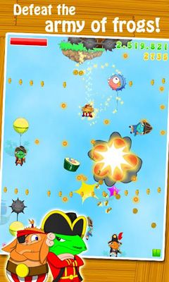 A cheerful and fascinating game. Open for yourself amazingly cheerful world filled with surprises. You should play in a role of a brave pirate traveling in the sky in search of treasures. You dared to steal expensive jewelry of the queen of frogs and now she thirsts for revenge, and is ready on everything to kill you. Help the pirate to run away from the queen. You, however, chose a very unusual way of flight - just jumped off from the air ship and now you fly down towards to uncertainty. During falling select gold coins and avoid various obstacles in your way. Don't forget that the queen sent all the army of frogs on your destruction. Be vigilant and don't get to their traps. Besides, you will be able to visit dangerous vaults, where you will need to turn aside from fiery spheres and other dangers, and thus also to collect coins. Simple, but attractive graphics which has a quite good portrayal and animation, for certain will be pleasant for you.
