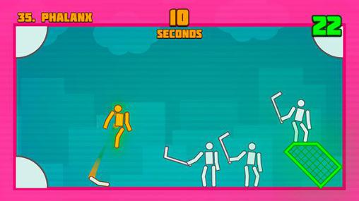 Take part in an unusual sport competition in which a sportsmen is used as an implement. The idea of this Android game is to score goals. Football, hockey and basketball levels are waiting for you. To complete any of the levels you need to score a head of a schematic figure of a sportsman into the gates. Blast body parts of the figure one by one to give impulse to move. Correct the flight direction. You have only 10 seconds to score a goal.