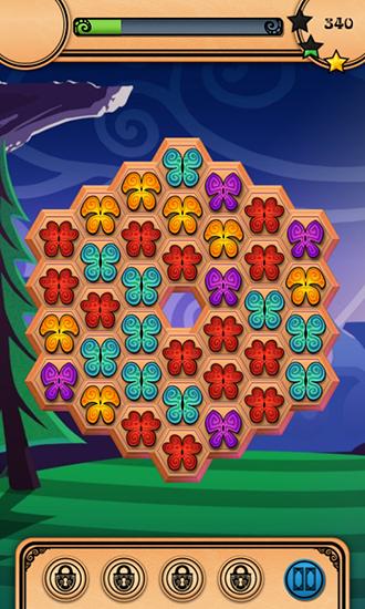 Connect butterflies of the same color with one line. They will fly away, new ones will take their place, and you'll get your reward. Save the fairies and their beautiful forest in this Android game. Travel the magical forest and find parts of the magical artifact. To do that you need to release the butterflies filling up the grid on the screen. The grid consists of hexagonal tiles, each with a butterfly inside. Try to match as many same butterflies as possible with a single line. You get more points, various bonuses and help of the fairies.