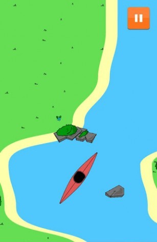 Control a red kayak on a winding river. You need to pass all the turns and make it to the finish without crashing into shore or various obstacles. Control a kayak by touching the right or left side of the screen alternately. Each touch corresponds to a paddle of a traditional two-bladed oar. Avoid the shore, mines and other obstacles.