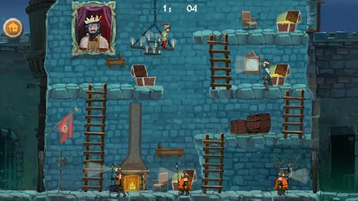 Help the brave Robin Hood in his noble mission. Steal gold form the castle of an evil sheriff and give out money to the poor. Join the famous hero of this game for Android. Sneaks into the well-guarded castle and guide Robin through the dark corridors. Jump along platforms sing stairs. Jump along platforms to get around traps. Hide from guards and the inhabitants of the castle in niches. Be careful to avoid lights. Collect all the gold hidden on levels and return to the poor villagers.