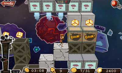 The most interesting is in the way how the robot clambers on boxes, puts forward or pushes them deep into designs and builds steps for himself. For interaction with a certain box you need to touch it at first, if it is in the reach zone, and then, without taking away a finger from the screen, to move it on that place where it will be a sense from it. Our character is capable to use boxes not only as steps. He can clamber even on steep walls. However, only to smooth surface, and then he should again jump at steps from boxes.