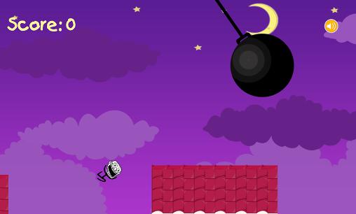 Move a funny hero running through a location full of different traps, obstacles, and hazards. Guide the hero as far as possible. Be careful, quickly tap the screen in the right moment to set a new record in this fun game for Android. Your task is to make the running hero jumping bottomless pits. Guide the hero on using multiple jumps. Be careful, don't let the hero touch saws, swinging pendulums, and other obstacles.