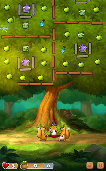 Help 3 funny squirrels save the fruit garden from many pests like spiders, bugs, and so on. Travel the vast orchards with the squirrels in this fun game for Android. The squirrels have to save fruit and don't let the pests destroy them. Two squirrels are tossing their friend up using a trampoline. Move squirrels from side to side to catch the brave hero falling towards the ground, beware of the insidious pests and save delicious apples and other fruits.