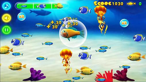 Control a fish swimming in the deep ocean. Help the predator hunt little fish. Rn away from hug see predators. Grow your predatory fish and turn it into the biggest fish of the ocean in this game for Android. Move your finger across the screen to control the fish. Your fish will eat that is smaller than it. This will make your fish grow and become a strong predator. But be careful and don't let the big fish eat the hero. Unlock scenic underwater levels filled with danger.