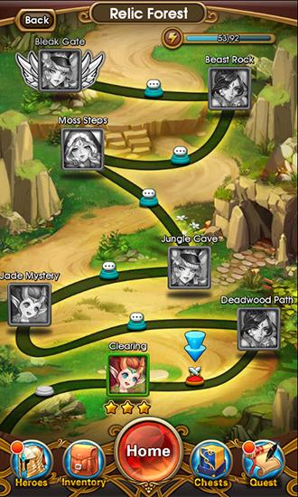 Head a party of beautiful heroines and go adventuring in this fantasy world. Crush enemies using your heroines to fight them. Go through many picturesque locations of this game for Android. At every step your party will fight a variety of monsters. Hit monsters with your party members. When they collide heroes deal damage to the enemy. At the same time heroes bounce off enemies, walls of the playing field, and obstacles. Use this ability to damage multiple enemies in one move or use other combos.