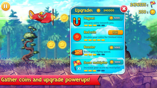 Fly a fast plane through various levels full of different obstacles and hazards. Collect coins on the way. Show your reflexes and piloting skills in this fun game for Android. Fly through the jungle, mountains, and other locations. Change the altitude to fly over or under obstacles. Collect as many gold coins and useful bonuses as possible. Set records for completing levels. Unlock new planes, each with unique stats.