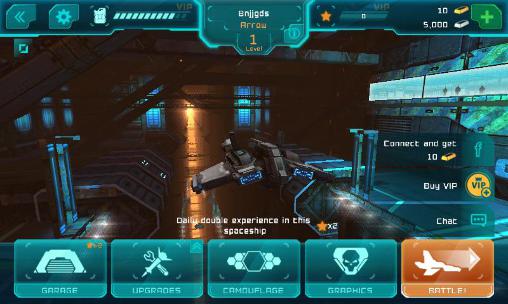 Fly your own space jet and fight strong enemies in fantastic locations. Shoot down enemy fighters. Become a space ace in this dynamic game for Android. Take the powerful fighter from a hangar and fight enemies in the open space, sky of distant planets, and other locations. Challenge players from around the world and win matches. Fight alone or join your friends. Take new models of fighter, each with unique characteristics.