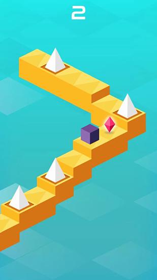 Control a funny cube hero speeding along a winding path. Tap the screen to remove sharp spikes from the way. You need your fast fingers and excellent reflexes to guide your hero as far as possible along the paths in this Android game. The narrow winding road is floating in the void and a small cube is rushing along it. The path has many sharp spines that you need to tap at the right moment to remove them. If you make a mistake, the hero will hit a spike and you loose the game. Unlock new characters.