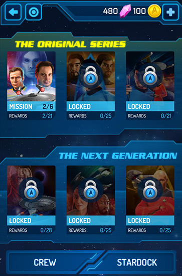 Control the Federation spaceship through the galaxy. Fight space pirates and other enemies matching rows of same jewels. Embark on a journey with the heroes of the legendary Star Trek series in this game for Android. Choose your favorite ship and crew from famous characters. Use your keen wits matching rows of 3 or more same gems. This will allow your ship attack enemies and defend against return fire. Improve characters, get new ships and upgrade them.